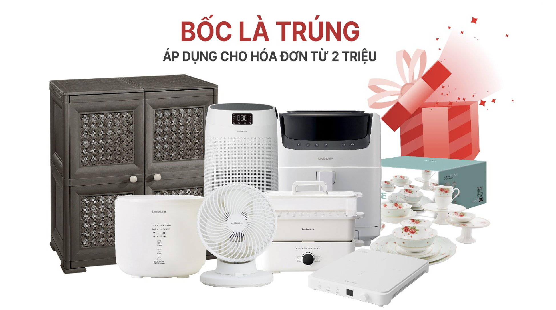 Cũng chắc chắn không thể bỏ lỡ chương trình rút thăm trúng thưởng Lucky Draw của LocknLock với khách hàng có hóa đơn từ 2.000.000đ. Tham gia chương trình, khách hàng sẽ có thể nhận được Bộ quà tặng Bianco, Máy lọc không khí, Nồi chiên không dầu cùng hàng ngàn phần quà giá trị khác.